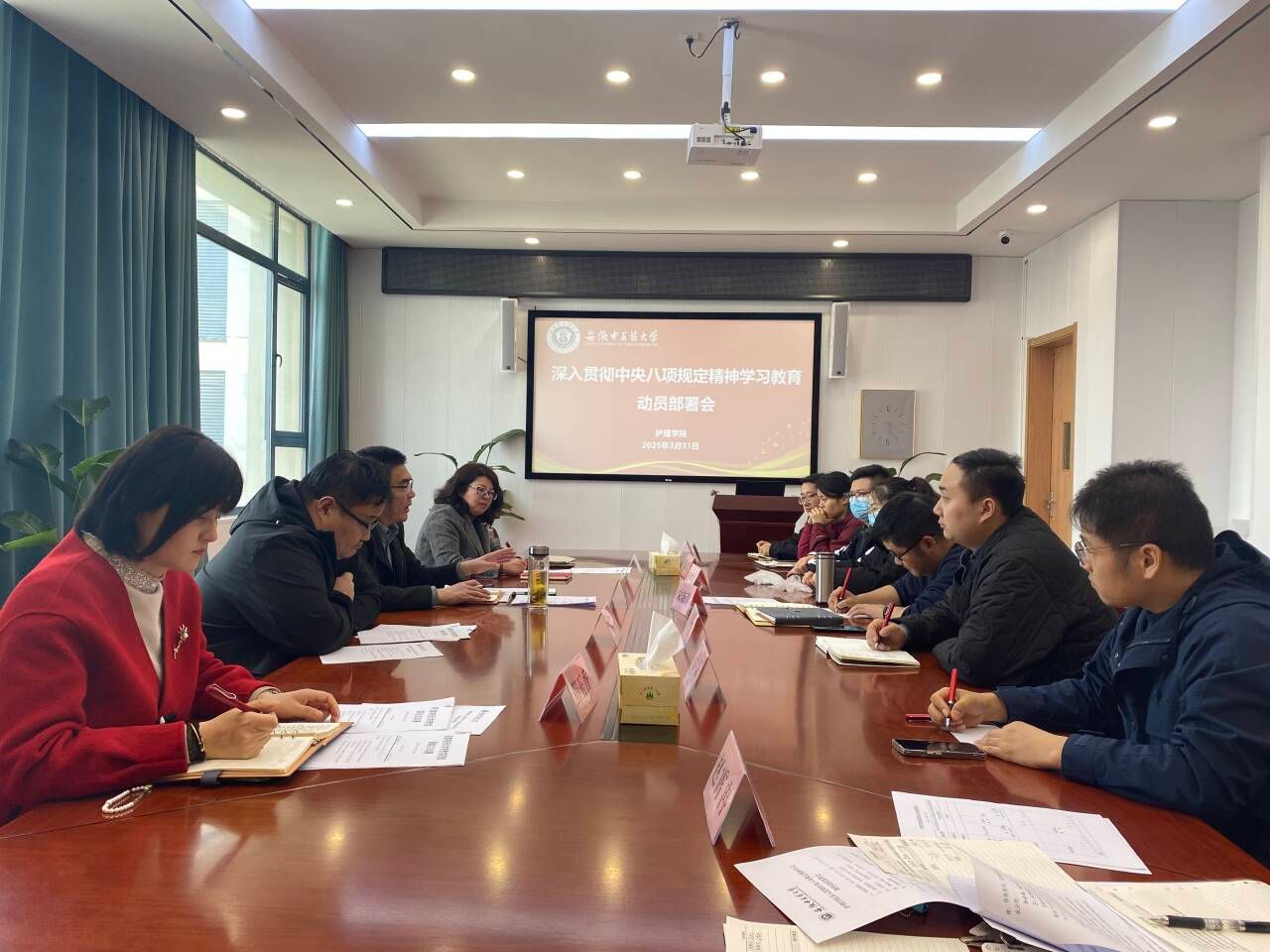 会议传达学习了学校深入贯彻中央八项规定精神学习教育动员部署会会议精神。会议指出,开展深入贯彻中央八项规定精神学习教育是捍卫“两个确立”、做到“两个维护”的具体行动,是进一步引导广大党员干部锤炼党性、提高思想觉悟的重要举措。会议强调,学院党委要按照校党委书记谢瑞瑾同志讲话精神和《关于在全校开展深入贯彻中央八项规定精神学习教育的实施方案》要求,落实好深入学习研讨、全面查摆问题、从严整改整治、坚持开门教育等规定环节和动作。会议要求,全院党员干部要自觉把思想和行动统一到校党委部署要求上来,坚持系统思维,把学习教育与落实年度党政工作要点,与推动全面从严治党警示教育等重点工作结合起来,一体推动实施,结合学院实际抓实抓细各项工作。(赵霄冉/文图 苏本江/审核)