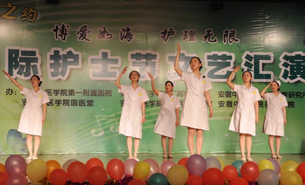 5月9日晚,我校“博爱如海 护理无限”国际护士节文艺汇演在西区多功能厅精彩上演。校师生医护员工代表载歌载舞,共同迎接第99个国际护士节的到来。