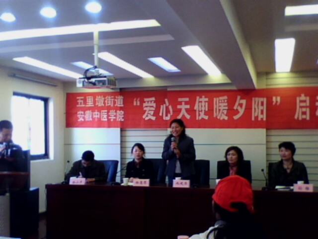12月3日下午,安徽中医学院yl9193永利官网和五里墩街道在青阳路社区会议室隆重举行“爱心天使暖夕阳”公益志愿活动启动仪式。yl9193永利官网院长池建淮,党总支副书记许晓燕,党总支书秘书余小平,五里墩街道退管科科长孙榕等出席了启动仪式。