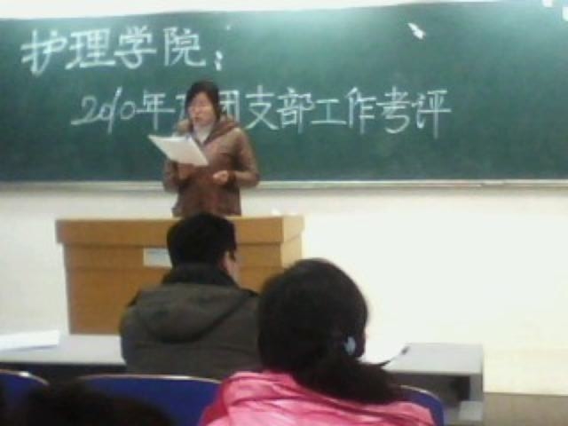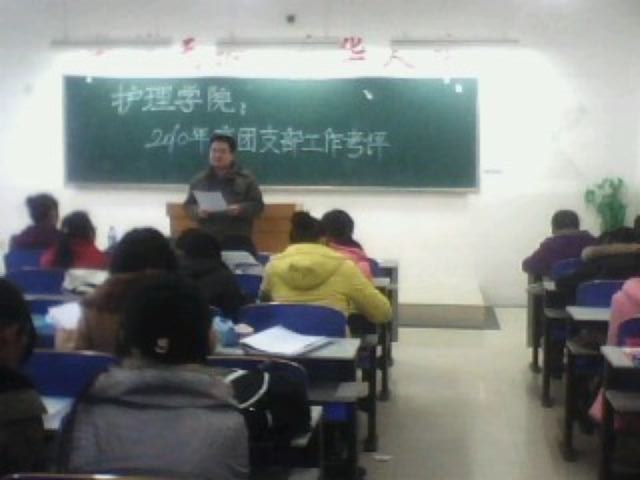 在会议上孙玉亮老师首先发表讲话,随后08、09级的各班团支部书记都一一上台报告了本班在2010年里所做的各项有意义的工作。最后孙老师还对各团支部工作进行总结并给予了几点建议,他希望各团支部开展活动重在质量而不是数量,尽量把活动办成本支部的特色活动并能有效地传承下去。