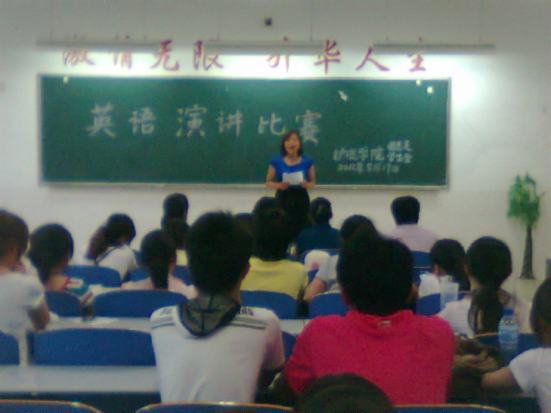 参加决赛的选手们都充满了热情,讲台上他们一个个神采飞扬,脸上挂着自信的笑容,用慷慨激昂的口语演讲吸引着在场的评委和观众,赢得了阵阵掌声,把演讲比赛的气氛一次又一次地推向了高潮。最后李静老师对此次演讲比赛所存在的问题提出了一系列建议,为此次演讲比赛画上了一个圆满的句号。