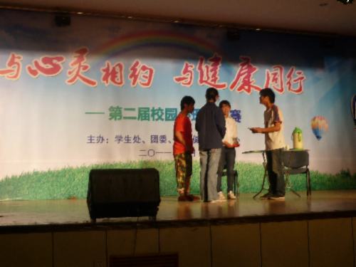 赛中,我院选手们用他们最大的热情和最真挚的情感为观众们演绎了《心灵的转弯》。剧中,我们看到了父母用汗和血倾注了对子女的那份浓浓的爱,子女的盲目沉迷以及最后的迷途知返。面对我院选手们生动投入的表演,评委徐昱作了精彩点评。首先,他肯定了选手们对于形象的把握和呈现的校园学生的心理问题。其次,他就这些问题进行了简明扼要的分析。最后,他给予了同学们忠告:千万不要做剧中那个被诱惑蒙蔽双眼的孩子。经过激烈的角逐,最终我院以82.4分的成绩荣获三等奖。同时,10护本(1)班的李宗睿同学荣获“最佳男演员”称号。