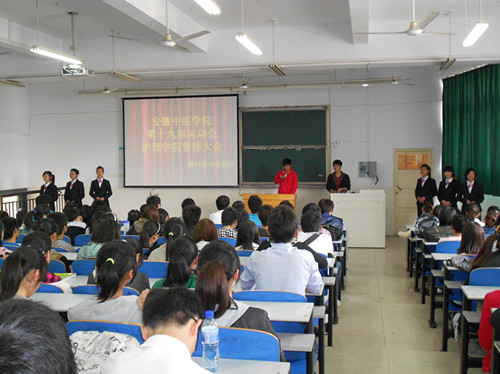 10月18日中午,第十九届校运动会yl9193永利官网誓师大会在新安楼501举行,由学生会秘书长刘达主持,院长池建淮、党总支书记牛忠军及辅导员老师孙玉亮出席大会,同时全体我院运动员、方阵队队员、引导员、啦啦队代表参与此次大会。