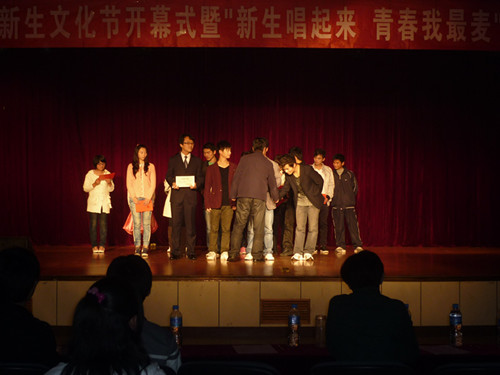 高声放歌,青春飞扬。我校2011新生文化节开幕式暨“新生唱起来,青春我最麦”歌手大赛于10月28日在西区多功能厅拉开帷幕。