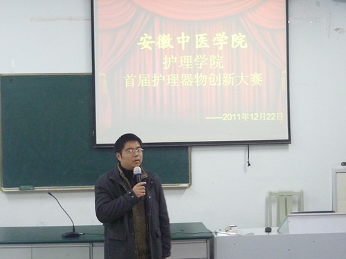 各位参赛选手借助PPT向评委及观众介绍创意来源及改进后的医疗器具的优点和适用对象,使大家能够直接明了的知道作品设计意图及优缺点,本次同学们展示的都是自己原创或是经过改造后的作品,创意思路来源于生活,作品样式新颖别致,取材绿色环保,本着以人为本的原则,尽量满足患者需求及为医师提供更加方便有效的医疗器具,作品尽显人文关怀。在同学们作品展示完毕后,评委老师就各作品的优缺点进行精彩点评和细致指导,并对此次比赛给予了高度的评价。