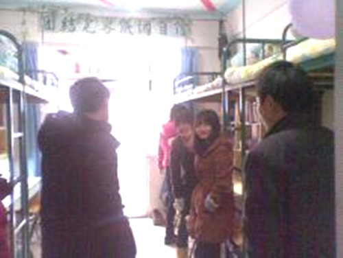 当晚,领导老师深入学生宿舍,逐一进行问访,认真察看了宿舍卫生情况,仔细了解了学生生活环境,殷切询问了学生住宿问题,并为学生排疑解难,耐心的回答了学生疑问。