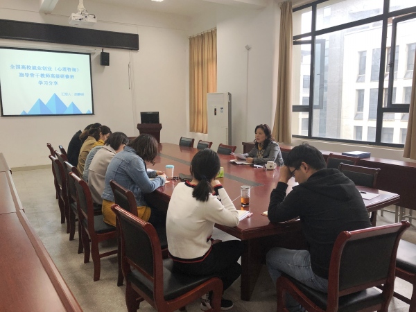 随后,胡静娴就全国高校就业创业(心理咨询)指导骨干教师高级研修班的学习经历进行分享,分别介绍了创新创业教育方法、竞赛项目书指导细则,以及“箱庭疗法”在心理咨询中的应用。