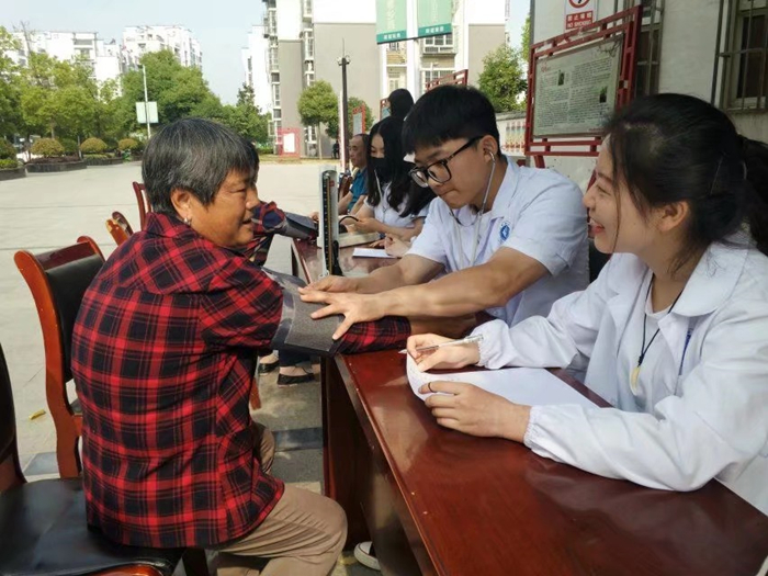 为有效开展志愿活动,17级护理八班在前期开展相关培训课程,进行专业的技能培训与学习健康知识。志愿活动包括少荃家园社区义诊,残疾人托养中心志愿服务以及夕阳红老年城志愿活动等。每次举办活动,八班同学会提前来到目的地,摆放好义诊所需的器材等待活动开始。在志愿者合理的安排下,志愿活动有条不紊地进行——有的排队量血压,有的推拿按摩艾灸。此外,同学们尽心尽责地为居民答疑解惑,耐心地向前来义诊的老人讲解定期检查身体的重要性,鼓励老人树立积极乐观的生活态度,养成健康的生活习惯。每次志愿活动同学们都与老人相处融洽,受到老人及社区居民的一致好评。此外,在2017-2018学年暑期三下乡志愿活动中,17级护理八班的“缘·爱”志愿服务队荣获“三下乡”优秀组织称号。