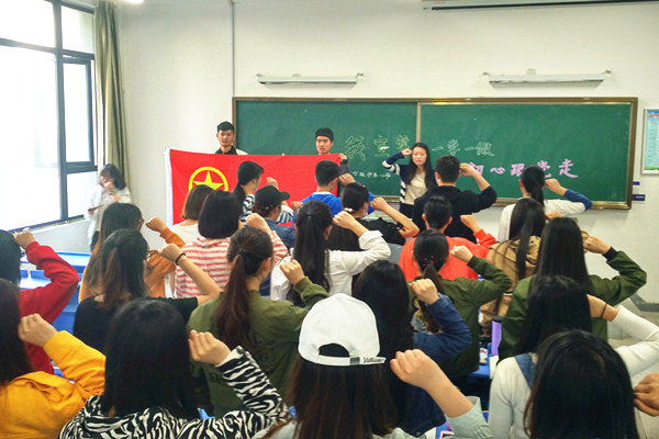 为深入学习习近平总书记系列重要讲话精神和治国理政新理念新思想新战略,做一名合格的共青团员,4月23日上午8点,15护本二班在b217教室开展“一学一做”主题系列之“不忘初心跟党走”重温宣誓词活动。班级全体团员均积极参加。