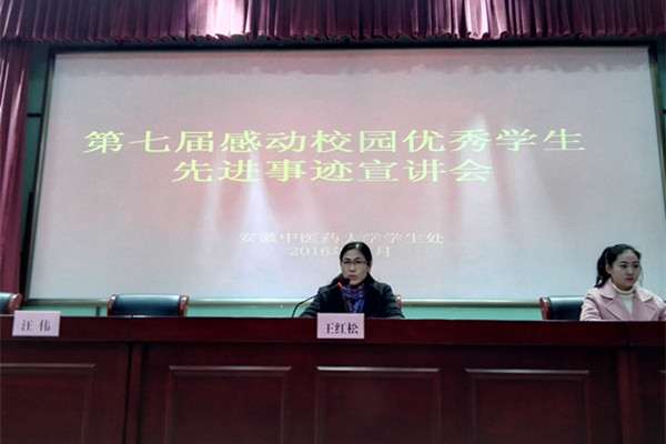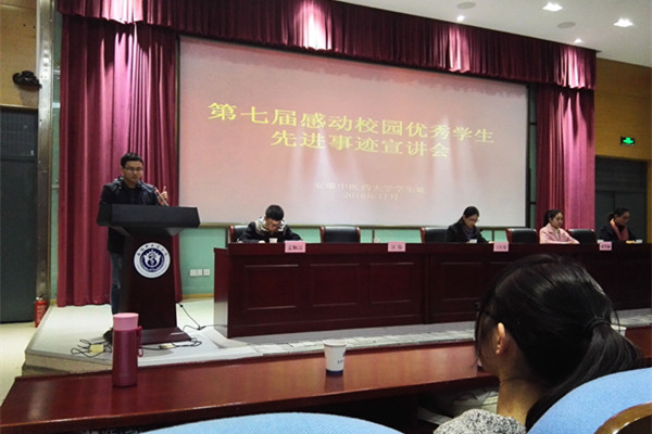 2016年11月22日,安徽中医药大学学生处在A114举行优秀学生先进事迹宣讲会,16级护本一班全体成员均积极参加。大会由学生处王红松主持,同时邀请到十余名优秀学生代表宣讲。