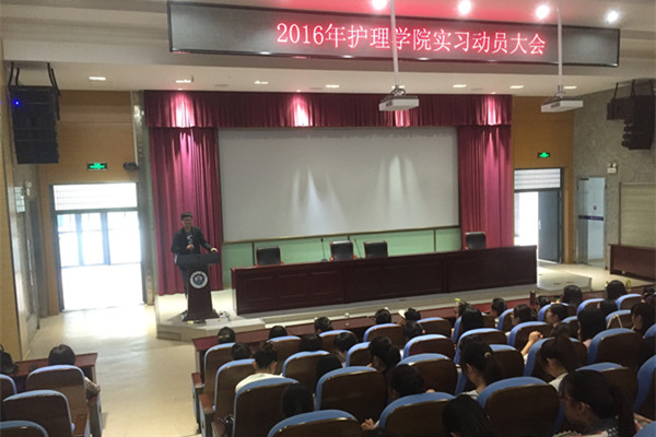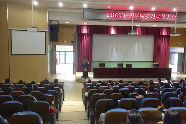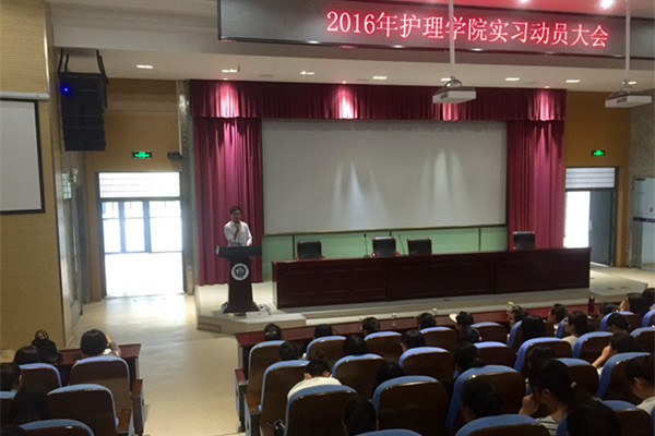 对于大三学子来说,五月是他们离开校园,走进实习岗位的季节。为进一步做好实习生实习前的思想和岗前培训工作,解决实习生实习前情绪焦虑问题,以便实习生更好更快地适应实习生活。 我院于5月18日下午3:20在A114隆重举行了2016届护理院实习动员大会。出席此次大会的有副院长叶伊琳老师、副处级辅导员方晓老师、实习秘书张传耀老师以及16届实习生。