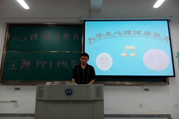 班会中,班长向同学们讲述了大学生心理健康教育的必要性及其意义还分析了大学生的心理特点和一些常见问题。他由大学生出现的一些心理问题的事例联想到自己,并讲述了他自身的心路历程,从而更清楚明白的让大家了解到大学生心理问题的各种情况。班会中,班长强调良好心态的重要性,建议同学们不要压抑自己,要懂得释放。