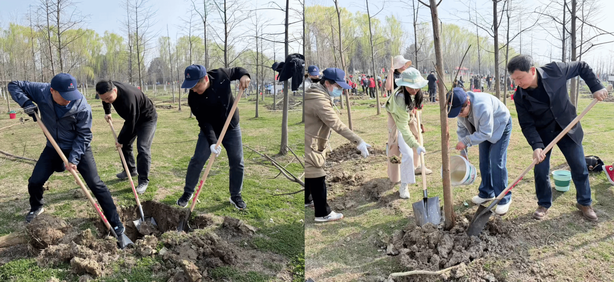 活动现场,老师们精神饱满、分工协作。大家挥锹挖坑、扶苗栽种、培土踏实、提水浇灌,每一个环节都一丝不苟。有人弯腰扶正树苗,确保根系舒展、树形挺拔;有人挥锹培土,将泥土层层压实,为新苗扎根生长筑牢基础;有人提着水桶往返浇灌,用清水滋润幼苗,现场一派热火朝天的劳动景象,成为春日里巢湖之滨一道亮丽的风景线。