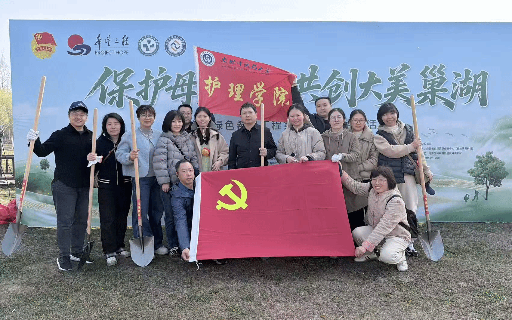 3月13日上午,由共青团安徽省委、安徽省青少年发展基金会及方兴社区联合主办的第六届“保护母亲河 共创大美巢湖”安徽绿色希望工程公益植树活动在塘西河畔热烈举行。yl9193永利官网党委积极响应号召,组织近20名教职工党员志愿者奔赴巢湖之滨,以实际行动践行“绿水青山就是金山银山”的生态文明理念,为共建美丽合肥增添一抹新绿。