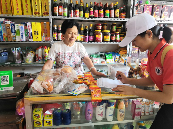 图为小卖铺奶奶热情的接受采访。中国青年网通讯员 周想玲 提供