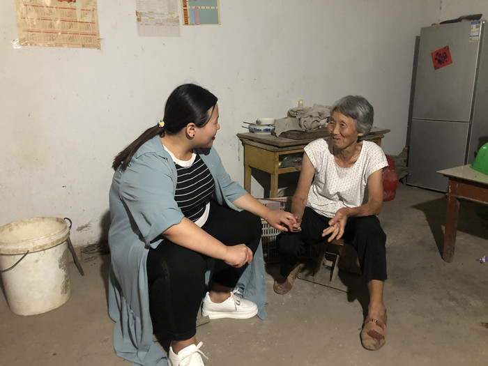 同学们首先探望了杨庄乡一户老夫妻家,家中只有两位八旬老人。志愿者一行赶到时,老人站在家门口热情地迎接。同学们搀扶着老人回屋后与爷爷奶奶热心交谈,询问其家庭基本情况、身体状况和生活状况。得知两位老人在家务农,子女均常年在外。屋子很小而且是土房子,只有一个简陋的桌子、一张床、几只小板凳和一堆杂物。考虑到老人身体不便,同学们们便决定帮他们打扫一下屋子。几个同学一起分工,擦拭桌椅,扫地,将用物摆放整齐,最后给老人换上心得床单被罩,摆上提前准备好的一些生活用品,整个屋子看起来焕然一新。两位老人表示:“我们老两口啊连房子都没有,这房子是政府给我们盖的,现在又有你们这帮孩子们来慰问我们,还帮我们打扫屋子,我们感激都来不及啊,真是太谢谢了!谢谢政府啊!谢谢你们啊!”在与两位老人亲切交谈一个多钟头,由于时间原因同学们与老人进行了简短的道别。两位老人热泪盈眶一再表示衷心的感谢,并执意送同学们离开。