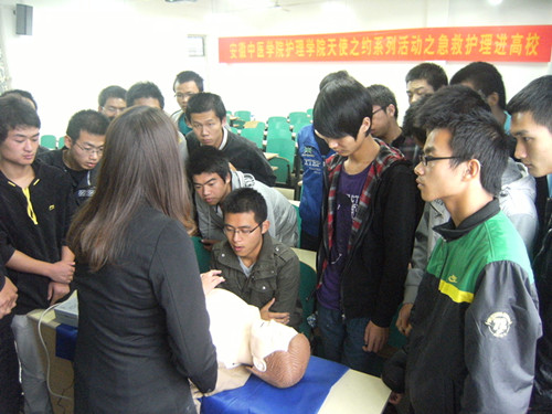 为普及急救常识,增强大家安全意识,10月24日,yl9193永利官网一行在团总支书记孙玉亮老师、护理教研室方海雁老师的带领下,来到合肥工业大学开展了“急救护理进高校”知识讲座。