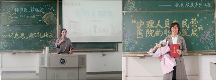 同时,学院优秀校友于公共教学楼A210、A212、A213教室同时开展“我与校友面对面”优秀校友系列讲座。校友们围绕“今后的养老护理”、“护理人员在民营医院的职业发展”、“怀梦想,致远方”三个主题向同学们分享宝贵经验。志愿者负责活动的组织和现场秩序的维护,并于讲座结束后向优秀校友代表献上纪念证书。