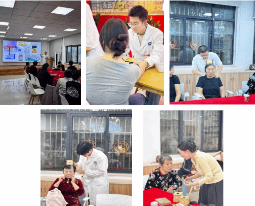 本次活动将现代护理学知识与中医“治未病”理念有机融合,引导居民掌握科学规范的血压自我监测方法,学习简便易行、效果显著的中医护理适宜技术,助力居民在日常生活中实现有效的血压管理与身心调节。活动现场,学生志愿者为居民演示了适用于高血压人群的穴位按摩方法,耐心指导大家精准定位太冲、曲池、涌泉等具有平肝潜阳、调和气血功效的穴位,并讲解正确按揉手法。此外,同学们还介绍了艾灸在温通经络、改善体质方面的辅助作用,以及刮痧在缓解高血压所致头晕、头痛等症状中的实际应用,受到社区居民的广泛关注与积极参与。