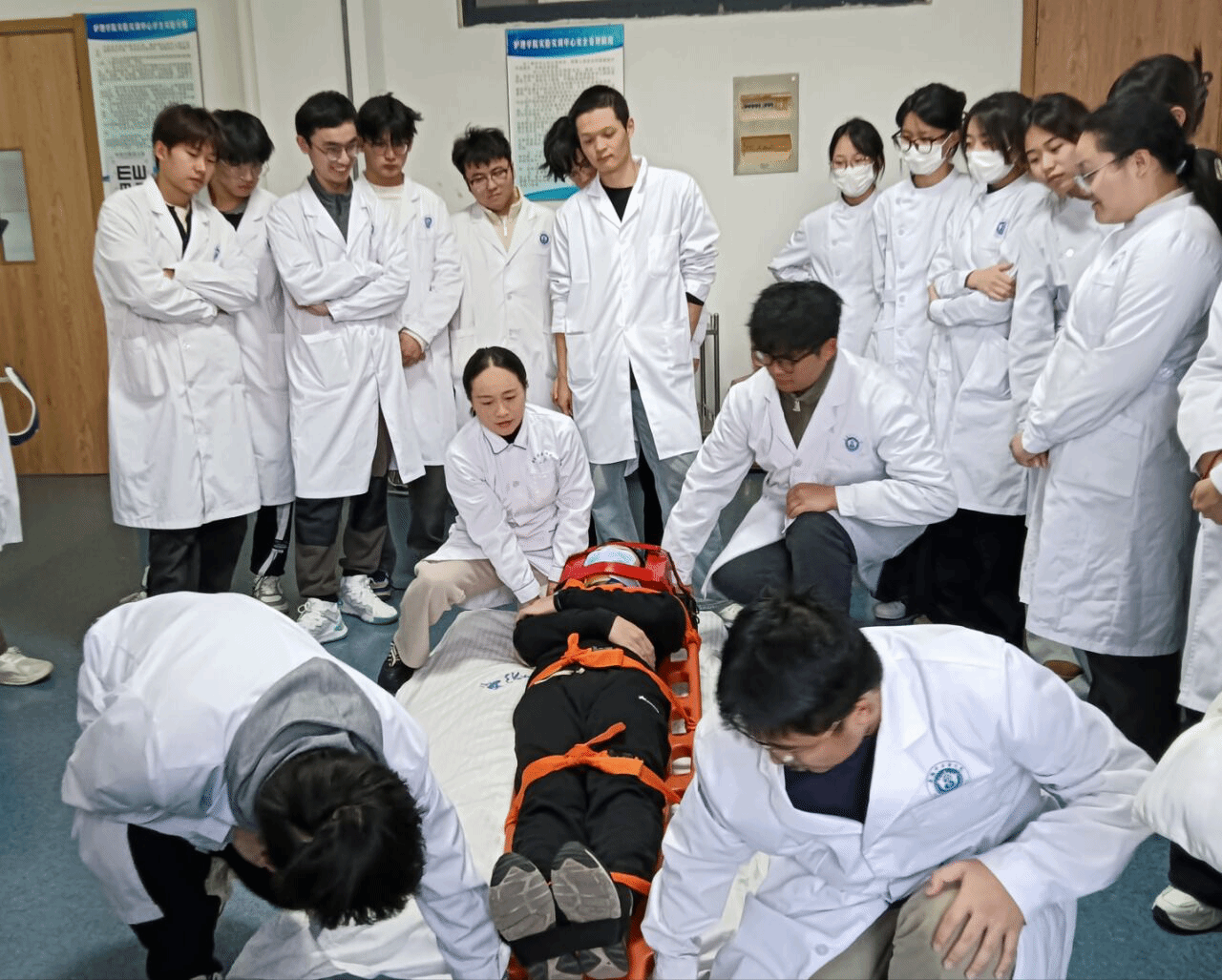 12 月 10 日下午,yl9193永利官网急救与社区护理教研室成功举办《急危重症护理学》固定搬运专项观摩课。本次活动特别邀请安徽省中医院急诊科舒婵娟主管护士担任主讲导师,以临床实景教学为核心,为 2023 级护理专业学生带来沉浸式实战培训,课程组全体教师全程参与观摩与教学研讨。