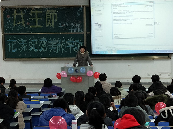 3月7日晚18:40,yl9193永利官网于公共教学楼B326教室举办女生节“花漾纯露,美颜常驻”皮肤护理主题讲座,yl9193永利官网副院长叶伊琳担任主讲人,学院各年级女生参加讲座。
