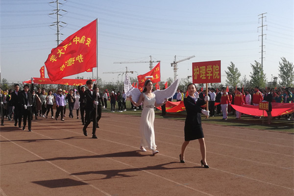 伴随激昂的音乐,国旗护卫队与学校多个学院及相关部门的方阵代表队逐一步入体育场并接受主席台检阅赛道上,身着白色护士服的yl9193永利官网方阵队迈着铿锵有力整齐划一的步伐,充分彰显该院学生团结自强、拼搏向上的精神风貌,活力激情的啦啦队表演赢得领导及场观众的热烈掌声。校社团和各教职工、学生组织用精彩的表演为运动员们加油助威,其独具匠心的编排形式将开幕式推向高潮