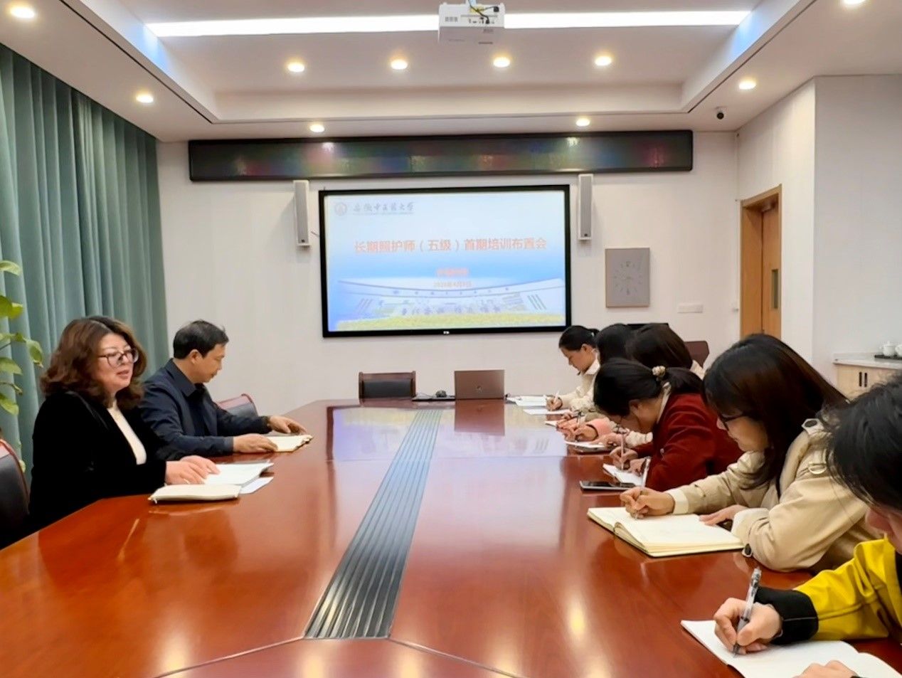 会上,学院围绕首期长期照护师(五级)培训方案、课程模块分工、学员日常管理及考核评价标准等核心工作,进行了全面、细致的部署安排。会议明确了各课程的课时分配、理论授课与实操教学的重点环节,要求全体授课教师严格对标国家职业技能标准,精心打磨教学内容、规范实操示教流程,严把教学质量关,确保首期培训工作高质量、规范化开展。