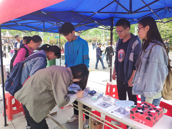 “悦”读节系列活动以读书月为契机,除了定期举办的悦读沙龙分享会外,还有线上、线下多种活动,感兴趣的同学们不仅可以前往位于yl9193永利官网四楼的湖畔书屋借阅书籍,还可以通过“湖畔书屋”微信公众号,参与各种线上活动,将自己喜爱的书籍和阅读感悟推荐分享给他人。23日当天的现场活动吸引了广大同学前来,热爱读书的同学们写下自己当场借阅的心仪书目,并相互交流读书体会。现场互动和赠送的小礼品激发了同学们的参与热情,现场气氛十分活跃。