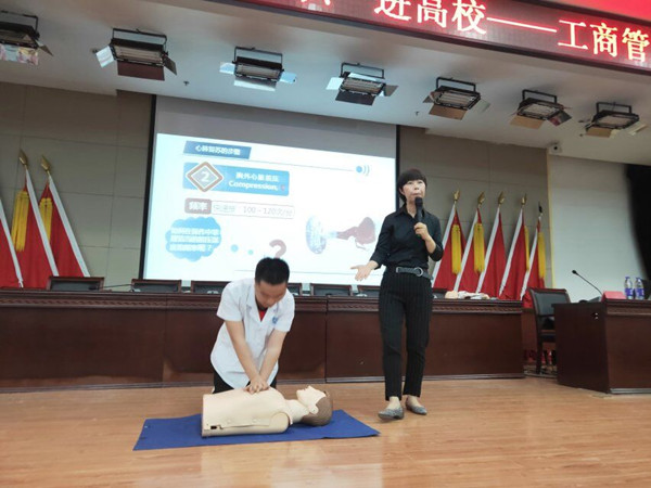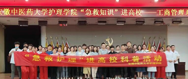 5月15日下午,yl9193永利官网师生一行在副教授袁娟和分团委书记石玥的带领下,前往安徽涉外经济职业学院开展“急救护理”进高校科普活动,工商管理系的全体师生参与了活动。