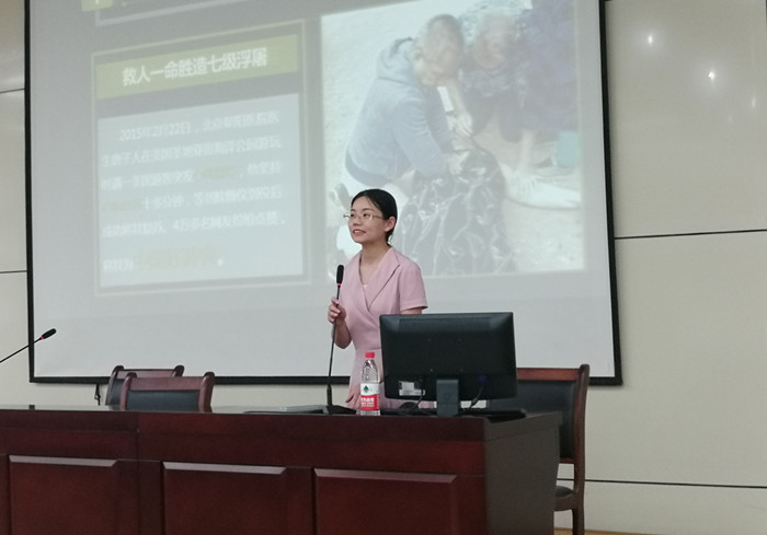 本次活动借鉴以往“急救护理”进高校科普活动的经验,创新两院合作特色,形式更加丰富多样,在宣传急救知识的基础上传播中医文化,让更多人了解我校传统中医药文化底蕴。活动首先由yl9193永利官网的同学们利用模拟人,向艺术系师生演示心肺复苏术的操作流程,让大家对急救护理知识有初步了解。随后,yl9193永利官网孟亚慧老师为同学们带来“急救知识”主题讲座,她将理论与实际相结合,向艺术系师生详细讲解心肺复苏术的操作方法及注意事项,同时与护院学生一起手把手教大家心肺复苏术,艺术系的师生们踊跃尝试急救方法,并与护院师生积极交流互动。