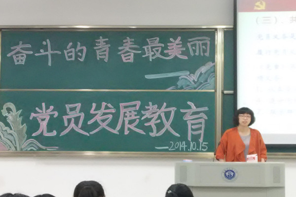 20141015晚上七点,yl9193永利官网14级“奋斗青春最美丽——党员发展教育”大会在B326举行。本次大会是新生入学以来第一次有关党以及入党的相关知识介绍,旨在让新生了解本院党组织情况,为将来党支部吸收优秀学员打下坚实的基础。此次会议是由学生第一党支部书记胡静娴老师主持。