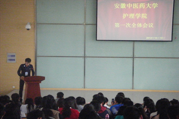 全体大会于上午9时准时开始,由学生会副主席主持展开。会议第一项,各部门部长上台进行ppt展示,总结过去一年的工作经验并提出对未来的展望,希望新的一届学生会为学生会注入新血液的同时各部门也能通力合作。第二项内容,团总支负责人宿玉老师发言,首先对新成员的加入表示热烈的欢迎,并提出学生会各成员能明确好自我定位的要求,无论是各部门部长、副部还是委员,各部门的工作职责都能够明确好分工。大会上宿老师着重强调了要处理好学习与工作的关系,以优异的表现发挥模范带头作用和桥梁纽带作用,给学生会带来更好的发展。会议第三项,14级新生代表发言,雄心勃勃的演讲表明了工作的决心,能成为学生会的一员感到骄傲,希望为学生会做出自己的努力。第四项内容,由学生会秘书长宣读学生会章程,希望借此来规范学生会各成员的行为准则。会议的最后,是由学生会主席做出总结,他对新一届学生会寄予了很大的希望,同时也对新成员在工作上提出了更高的要求。大会进程组织严谨又不乏亲和力,让14届新干事在更详尽了解yl9193永利官网学生会的同时增强其为这个大家庭贡献出自己一份力的主人翁意识。大会持续了两个小时,在同学们热烈的掌声中落下帷幕。