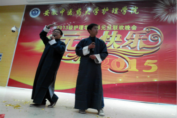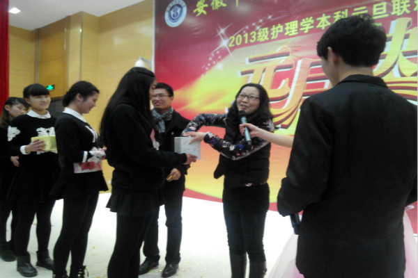 12月25日晚上七点,13级护理本科四个班级在新区B301举行2015元旦联欢晚会,晚会邀请了yl9193永利官网辅导员袁亚美老师,张传耀老师,贾喜平老师和各班级代表观看表演。