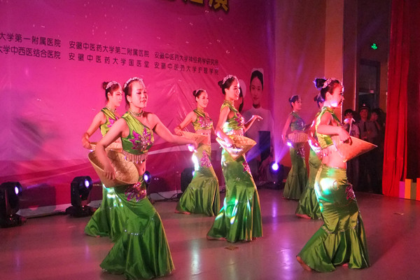晚会的重头戏是各附院以及学院文艺队带来的舞蹈表演:有展现大学生青春活力的《Glass Bead》;也有彰显在岗医护人员工作热情的《阿瓦卡丹》;有幽静自然的《竹林深处》;也有春意逼人的《花开茉绿》;更有充满异域风情的印度舞《Ti Ke Tike》以及富有四月江南气息的《梦回水乡》。表演形式之丰富,舞姿之优美让观众大呼过瘾,欲罢不能。最后,舞台剧《生命的天使》中,大合唱把整个晚会推向了高潮,对生命的赞歌回响不绝。
