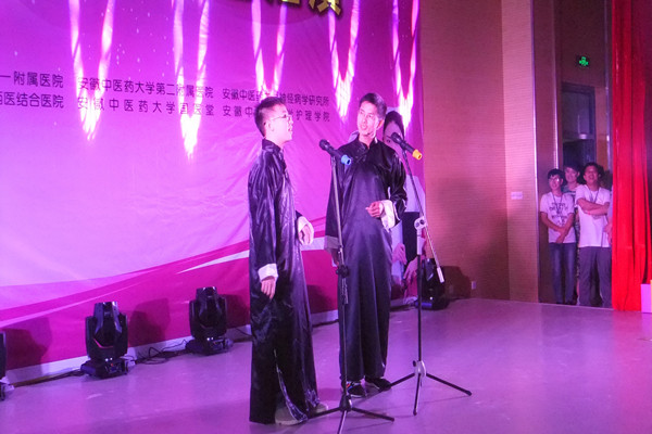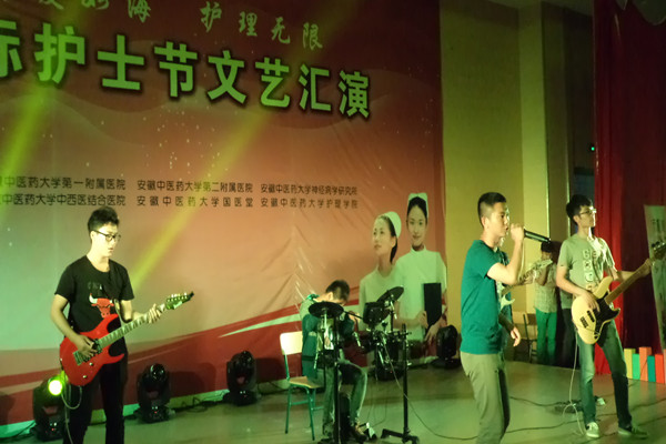 在震撼的开场视频以及灯光秀,晚会正式拉开序幕。舞台灯光骤暗,十几只手套闪着荧光在黑暗中如同白鸽飞舞,在悠扬的旋律中,时而整齐地飞翔,时而拼凑成搏动的心脏,使人眼花缭乱,美不胜收。整场晚会节目形式多样,特色鲜明,主题积极向上,情景剧《大医精诚》用欢笑和泪水告诉观众们护士这份职业崇高的意义;相声《满腹经纶》逗得全场观众爆笑连连,掌声经久不绝。如果说安徽农业大学经济技术学院的四位帅小伙们带来的摇滚乐串烧让观众激动欢呼,那么大学生艺术团的乐器表演《天空之城》则使观众静下心来,聆听弹奏出的动人旋律。由来自yl9193永利官网以及药学院的辅导员们送上的歌曲串烧传达了老师的情感,而T台秀上个性彰显的服饰以及模特自信飞扬的神采完美的结合。