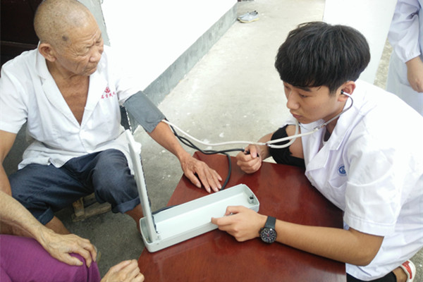 当日下午2点刚刚抵达目的地,资深的领导老师们就为当地居民诊脉、看面相舌象,诊断居民健康状况,为日后日常生活中应注意的事项提出诊断意见;而同学们则利用所学知识为当地居民测量血压、按摩、推拿,预防颈椎病,腰椎间盘突出等居民常见多发病。并发放散发健康知识“小贴士”,提高居民的健康意识 。最后在乡镇政府带领下前往参观当地卫生院,了解日常居民的健康就医情况和当地卫生院的工作运行状况和相关制度问题 。