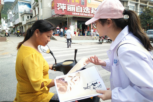此次活动于小河镇人口集中处搭建帐篷,并摆出各种中药材的图片,邀请来往当地居民通过观察图片辨别药名,并由志愿者们为他们讲解各类药材的名称、药性、药理,而且居民们猜对药材还可得到一些日常所需药品。