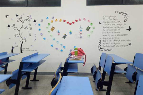 各班级的装饰风格迥异。有用精美的字画贴纸修饰,有用彩带和班级照片点缀,还有用画笔直接在墙上勾勒古风图案。班级布置各有千秋,其中医美专更是别具匠心。以四个不同的静字,示意学生要静心读书;以梅兰竹菊字画,告诉学生要清雅淡泊。心愿墙上满是学生对未来的祝福,知识之窗更是学生的文采集聚,整体布局和谐而富有寓意,赢得一致好评。