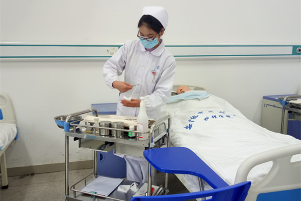 此次大赛于9日下午在公共教学楼进行笔试,笔试题目涵盖基础护理学、中医护理学、护理学导论等基础学科。又于14日在B7-246、248进行实验技能考核。考核内容包括鼻饲法、生命体征测量、静脉输液、心肺复苏术四项。这些考核项目充分考验着选手的综合素质,要求选手不仅具有娴熟的技能操作能力,还需要有扎实的理论知识基础和良好的人际沟通能力。比赛过程中,选手们严肃认真、井然有序,现场气氛紧张而又和谐,体现了浓厚的护理学术氛围。