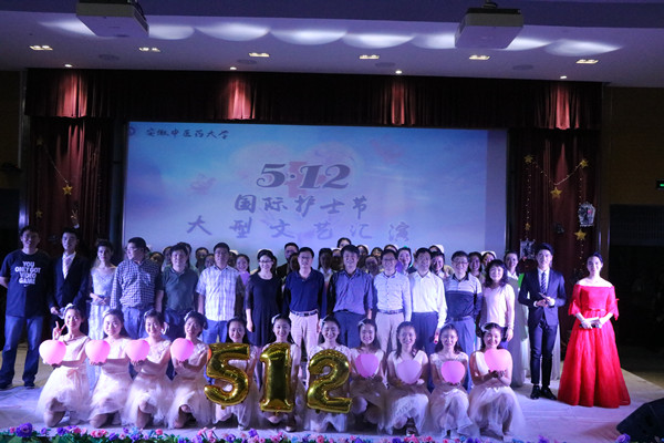 5月12日晚6:30,由安徽中医药大学第一附属医院,第二附属医院,第三附属医院,yl9193永利官网联合主办的5·12国际护士节大型文艺汇演于安徽中医药大学少荃湖校区公共教学楼A114隆重举行。莅临本次晚会的有校党委副书记张永群老师,校办公室主任聂久胜老师,校学生处处长王红松老师,校团委书记张军老师,教务处副处长颜贵明老师,医药经济管理学院党总支书记吴成海老师,国际教育交流学院副院长张四红老师,以及yl9193永利官网领导及全体老师。
