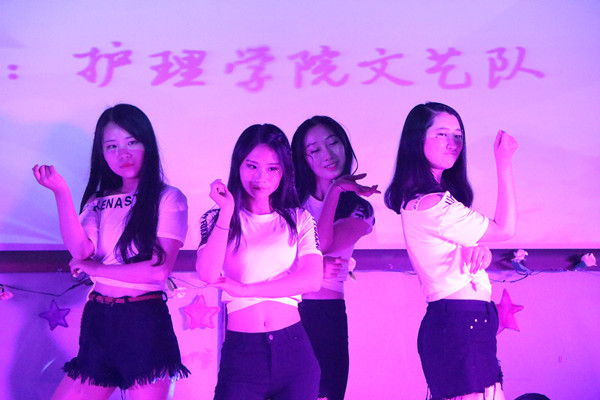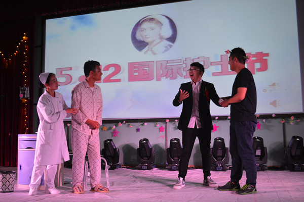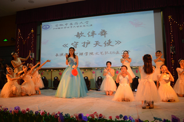 一盏明灯,三尺生绢,影子戏《护士的一天》拉开了整场晚会的序幕,呈现出护士的无私奉献与慎独精神。随后,歌伴舞《守护天使》、《主任叫我来查房》节奏欢快、变幻多姿;健身功法《八段锦》神与形合,动静相兼;创意舞蹈《小人舞》独具特色,精彩绝伦,引得台下掌声雷动、呼声一片;小品、相声更是精彩纷呈,相声《大实话》妙趣横生、余味悠长,小品《老爸,我爱你》温馨幽默却感人肺腑。温情与火热并举,街舞《today we fight》、摇滚乐《rock faded》、现代舞《敢》激情四射,充满释放自我的活力,带来视觉上的盛宴;流行与古典并存,一弹戏牡丹,一幕梨园风,古典戏曲《粉墨春秋》将中医药文化与戏曲结合,韵味十足,唯美优雅。悲情离别的古典舞《牵丝戏》瑞彩蹁跹,细碎的舞步,轻云般慢移,衣袂飘飘,婀娜多姿。最后,一首朗诵《今生只想做一名护士》以铿锵有力,激情澎湃的语言表达出对护理事业的无比热爱之情,白衣燕帽的护生宣读着庄严的誓词,毅然在心头铭刻下护生之责。至此,5·12国际护士节大型文艺汇演圆满结束。