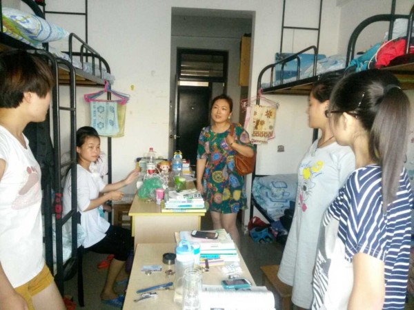 检查组对刚刚调整住宿的11、12级同学进行了重点慰问,深入到每一个宿舍,询问同学们的生活、学习及思想状况,叮嘱同学们注意人身财产安全,并亲切的和同学们谈起专业学习情况,提醒大家注意新调整的作息时间,勉励大家及时调整心态,做好开学准备。