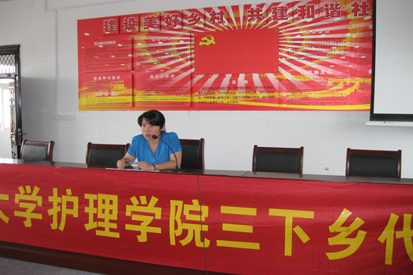 紧接着,许书记发表讲话,为村名们简单的介绍我们学校的概况以及此次三下乡之行的目的。随后,开展医疗知识讲座,yl9193永利官网的老师们依次发言,详细地讲解了意外发生的措施以及老年人的健康保健知识,在场的老人们仔细听讲并认真的做笔记。讲座结束后,老人们均表示受益匪浅。