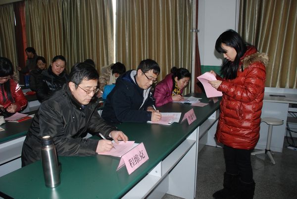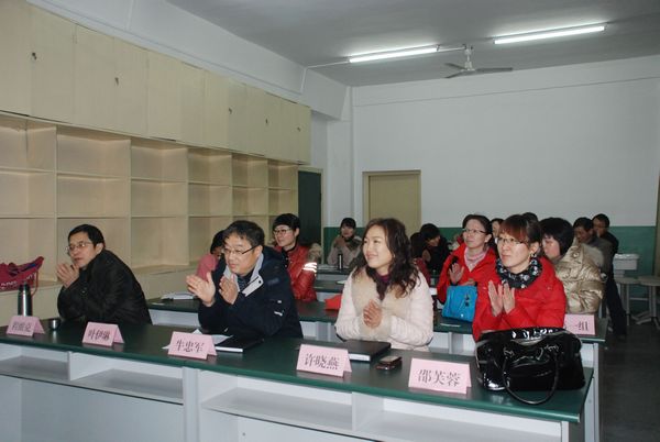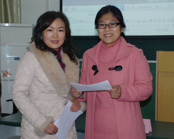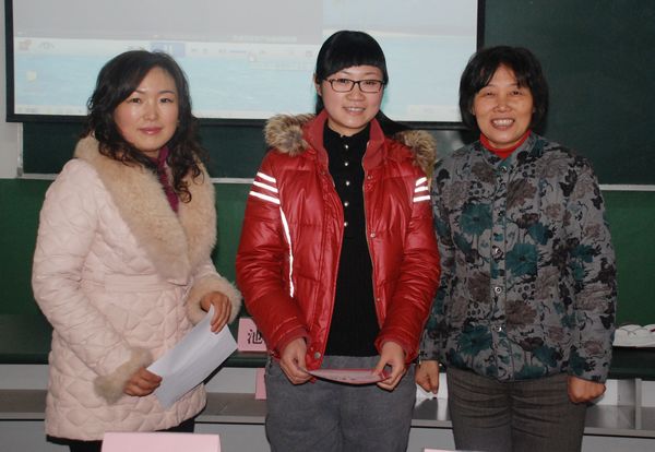预备会上为青年教师基本功大赛获奖选手代表颁发奖状