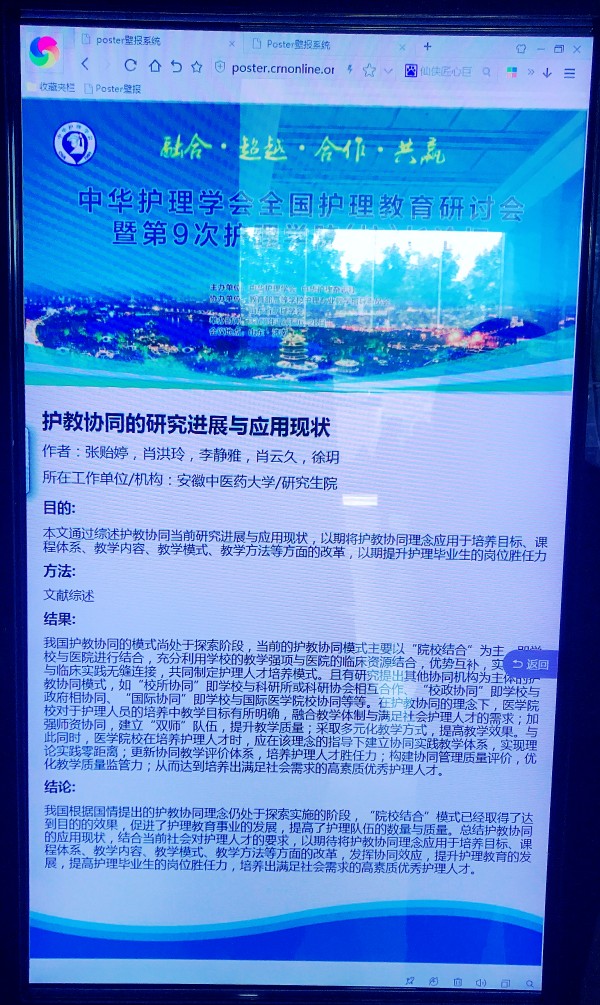 我校yl9193永利官网的张传英老师当选为中华护理学会第二十七届理事会护理教育专委会青年委员。yl9193永利官网2篇论文在全国论文中被遴选为大会交流论文,其中施慧老师等1篇,张贻婷同学等1篇,且以张贻婷同学为第一作者,肖洪玲老师为通讯作者的论文被遴选为大会壁报交流论文。(张贻婷/图文 吴成长/审核)