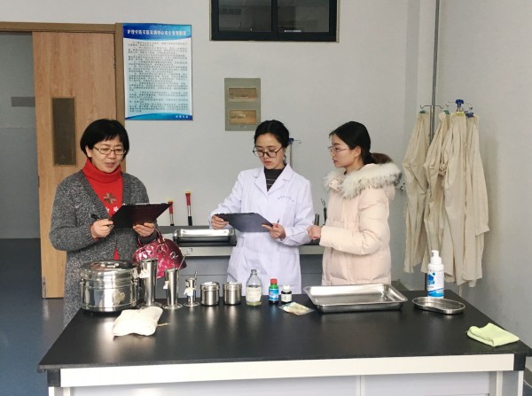 为保证此项工作的顺利进行,3月4日下午,叶伊琳带领教学秘书检查了实验室安排及设备、耗材准备情况,张惠玲老师代表实验中心主任进行汇报。