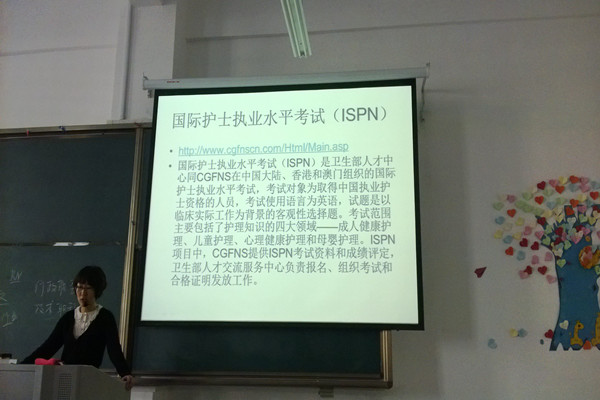 讲座开始,老师就护理学专业做了细致的分析。首先说明了护理学的内涵以及护理职称的考取流程,然后介绍了我们学校护理学专业的前景。其次就护理专业的新生,老师又进一步介绍了护理专业开设的课程、实习基地、考证考研情况等知识。老师细致的讲解,让在场的每一位同学对护理专业有了更深的认识。讲座中,老师还分享了很多学长学姐们的励志故事,传授经验的同时也鼓舞了大家对美好未来的憧憬。最后,老师还特别强调了护理专业学生的人文精神培养,建议同学们多读书,多参加校院级班级活动,多锻炼自己的语言表达沟通能力,增加自己的文化功底,丰富自己的人生阅历。
