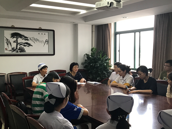 在会议室,叶院长与学生亲切交谈,详细询问了她们的工作、学习、生活情况,征询了学生对实习医院的意见和建议,并且有针对性地对学生在实习期间遇到的问题给予指导和解决。叶院长也对同学们提出了殷切希望,希望她们在接下来的实习期间,扎实工作,努力学习,遵守医院纪律,注意人身财产安全。