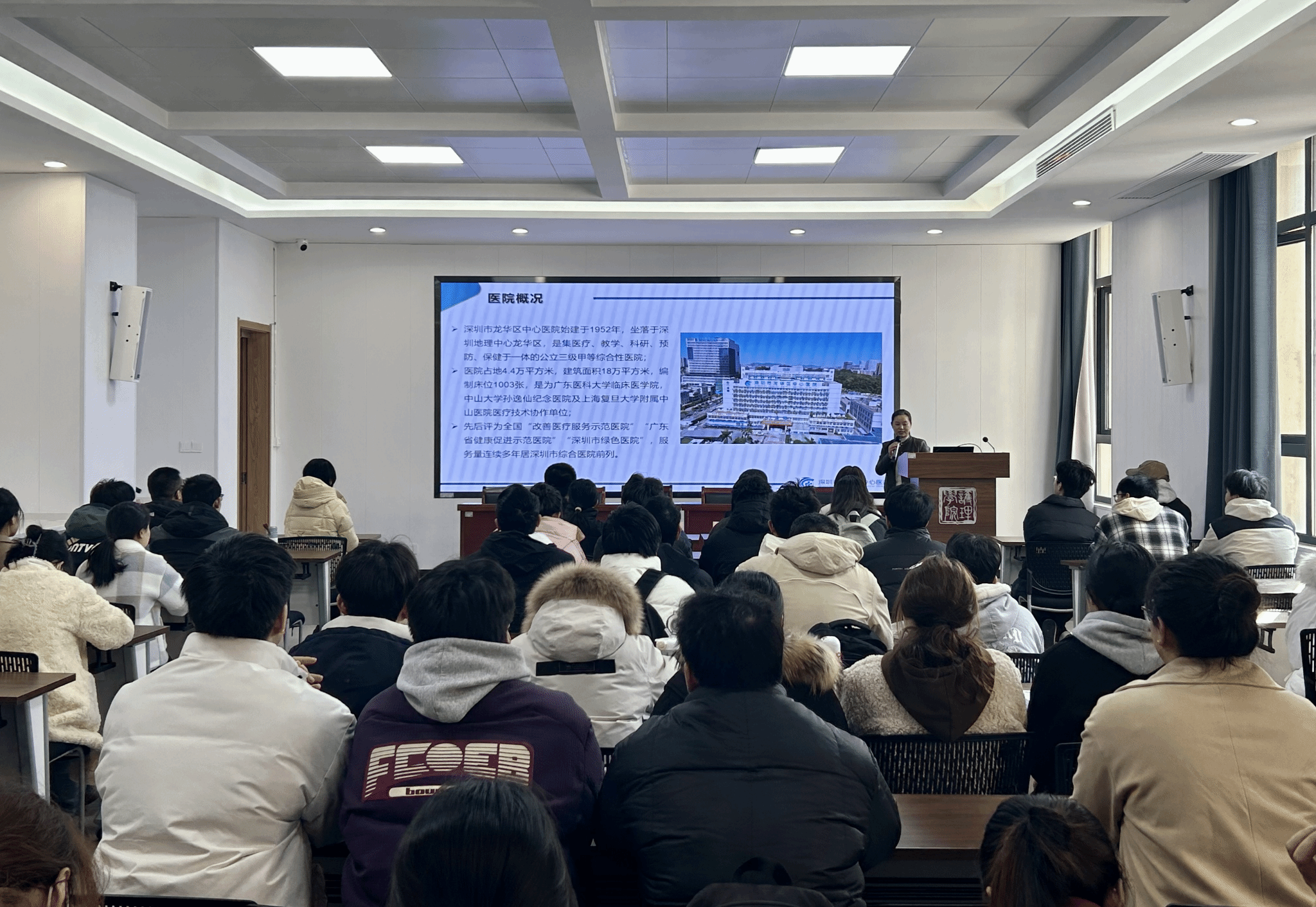宣讲会上,深圳市龙华区中心医院副院长朱双根表示,作为深圳市龙华区规模较大的三级综合性医院,医院以“医教研协同发展”为特色,致力于为护理人才提供广阔的职业发展平台,热忱欢迎广大护理专业毕业生积极参与应聘。