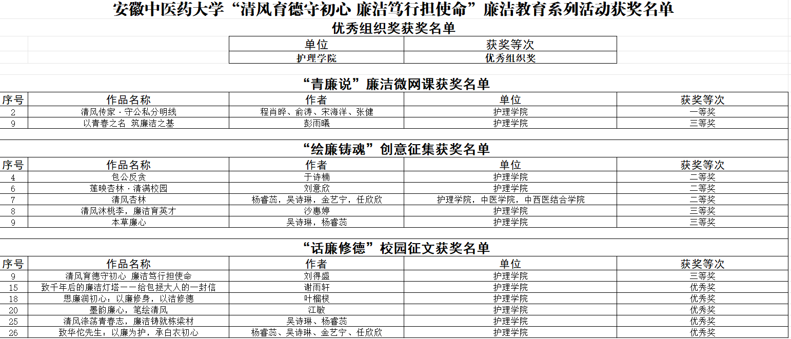 学院纪委表示,将以此次获奖为契机,持续深化“清廉护院”建设,将廉洁教育融入人才培养全过程,引导广大护理师生将廉洁理念转化为实际行动,为学校建设“双一流”、推动中医药事业发展贡献护理力量。(卞海/文图 颜贵明/审核)